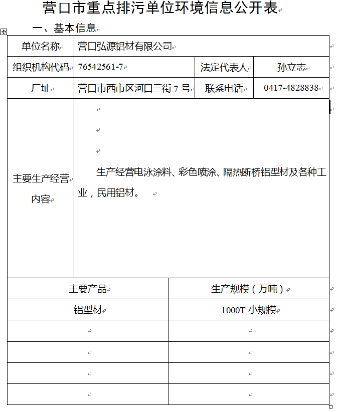 - 營口市重點排污單位環(huán)境信息公開表